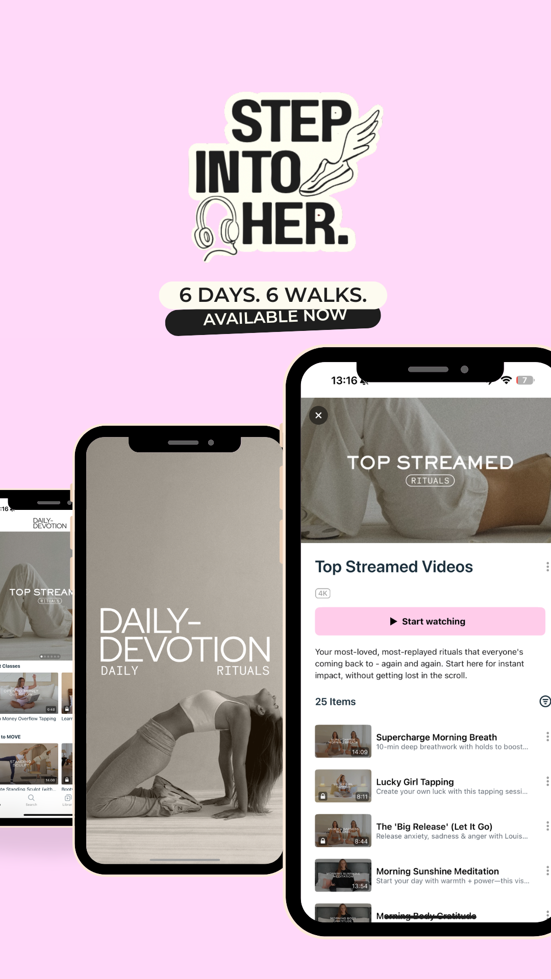 As an Integrative Health Practitioner, I realized that the Walking Meditations on the market felt limited. They were either too short, or they were all focused on ‘calming’ the nervous system (which is only a small part of experiencing real change). I was going on daily walks (either outside or on the treadmill) and it was STRESSING my nervous systems out to have to scroll through Spotify and find a playlist, podcast or audio book to listen to. I knew that any sort of stress/apprehension wasn’t going to help me ease into a walk, or help my nervous system rewiring. Because of that, I got to work, producing audio tracks that I call ‘Walking Elevations’ that combine daily steps with subconscious rewiring, frequency shifting, somatic breath cues and emotional scripting into my daily walk. For me, they are the ultimate hot girl habit stack.